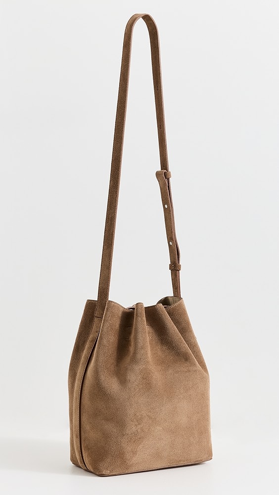 Suede Gold-tone hardware Open top with interior clasp closure Zip interior pocket Adjustable strap Lining: Suede Weight: 14oz / 0.4kg Imported, Philippines Style #TORYB51291