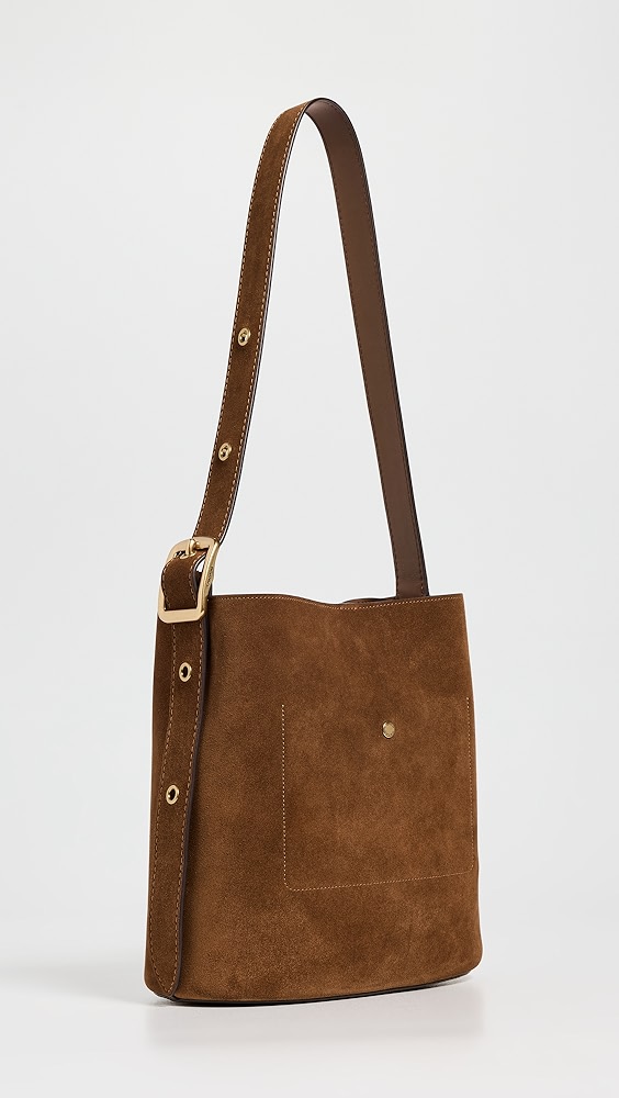 Cowhide Drawstring top with toggles at sides Pebbled finish Fixed strap Open top Patch interior pocket Lining: Unlined Weight: 23oz / 0.65kg Made in Italy Style #MANDB30615