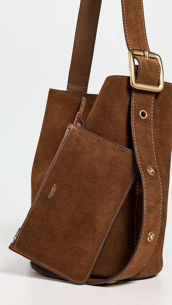 Cowhide Gold-tone hardware Removable interior zip pouch Open top with dog leash clip closure Lining: Unlined Weight: 40oz / 1.13kg Imported, Vietnam Style #COADB30666