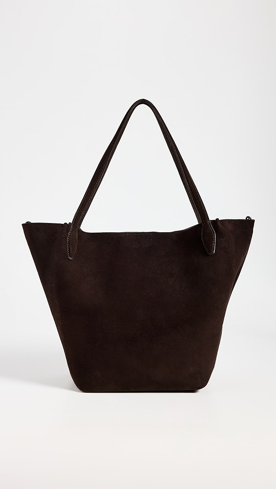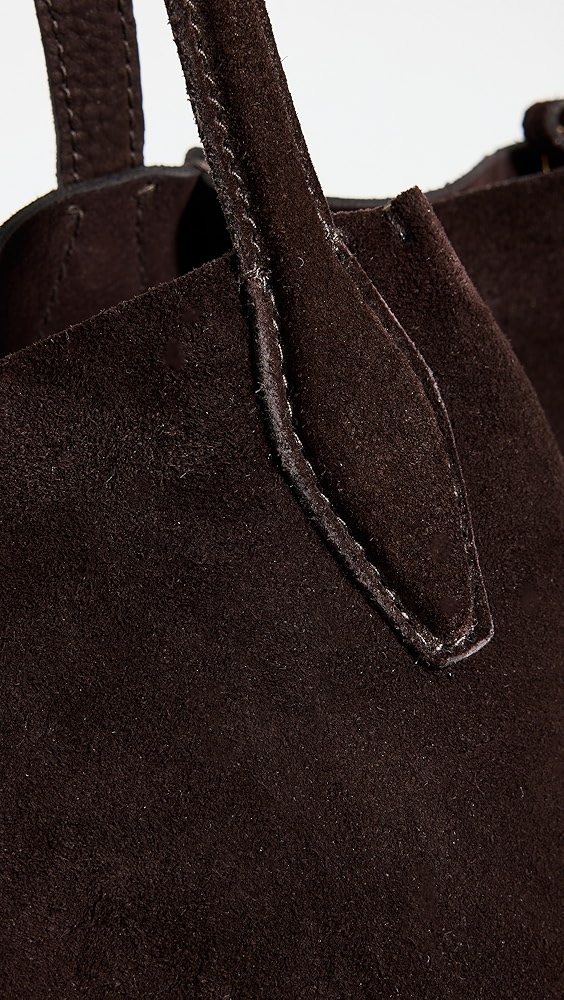 Suede Drawstring top with adjustable toggles at sides Fixed strap Open top Patch interior pocket Lining: Unlined Weight: 21oz / 0.6kg Made in Italy Style #MANDB30616