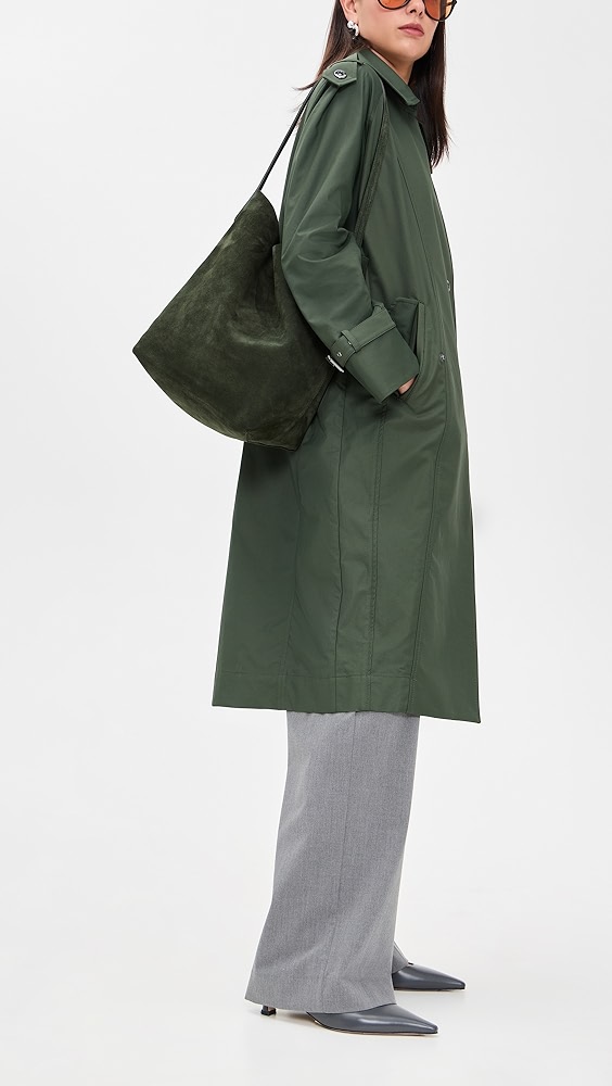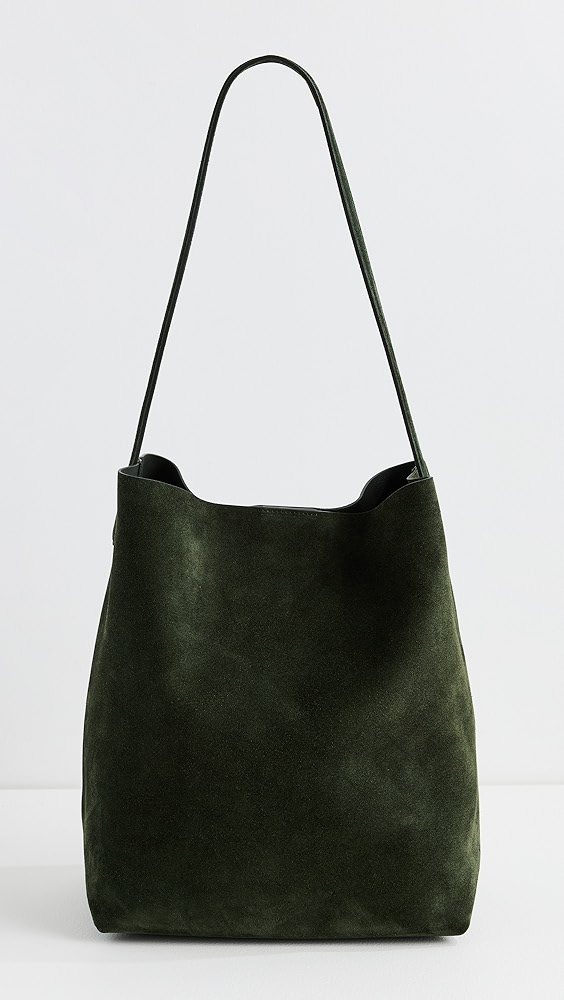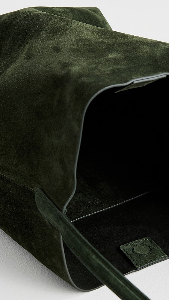 Suede Drawstring top with adjustable toggles at sides Fixed strap Open top Patch interior pocket Lining: Unlined Weight: 21oz / 0.6kg Made in Italy Style #MANDB30616