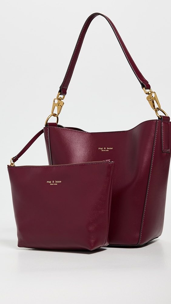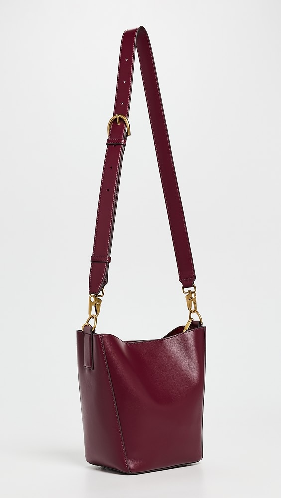 Cowhide Claw clasp closure at top Detachable zip pouch Suede logo charm Open top Patch interior pocket Adjustable straps Lining: Leather Weight: 31oz / 0.88kg Imported, Vietnam Style #COADB30664