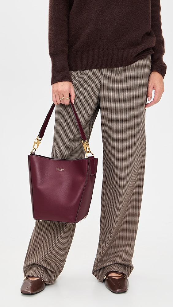 Calfskin Belted detail Gold-tone hardware Open top with magnetic closure Patch interior pocket Optional, adjustable strap Lining: Suede Weight: 18oz / 0.51kg Imported, China Style #JONDB31776