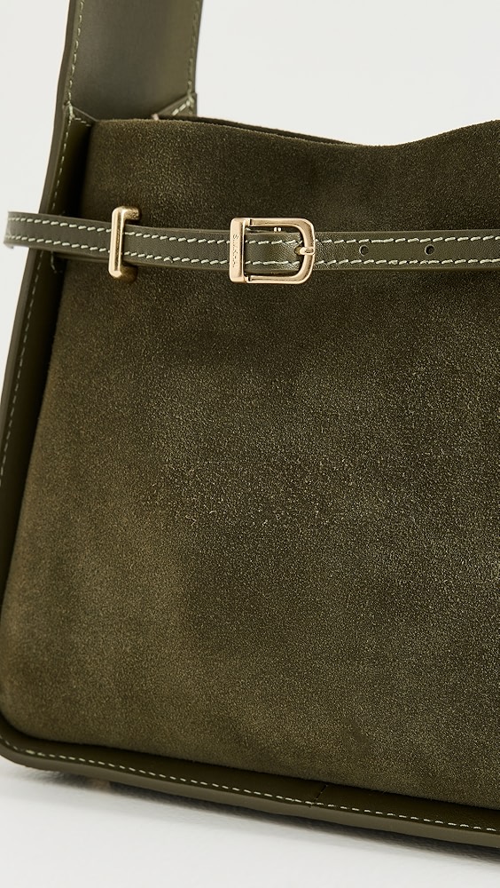 Cowhide suede Structured base Hidden magnetic closure at top Adjustable strap Textile lining Weight: 32oz / 0.91kg Imported, Cambodia Style #MADEW46632