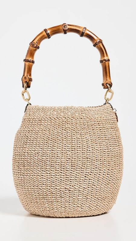 Woven raffia Bamboo top handle Gold-tone hardware Open top Lining: Unlined Weight: 8oz / 0.23kg Imported, Philippines Style #CLARE21255