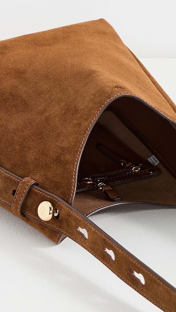 Pebbled cowhide Gold-tone hardware Drawstring top Optional adjustable crossbody strap Lining: Suede Weight: 16oz / 0.45kg Imported, Philippines Style #TORYB50991